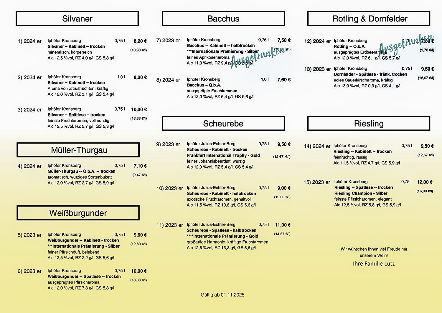 - Hier unsere Weinauswahl und Preisliste - Stand Januar 2026 (Änderungen und Aktualisierungen vorbehalten)